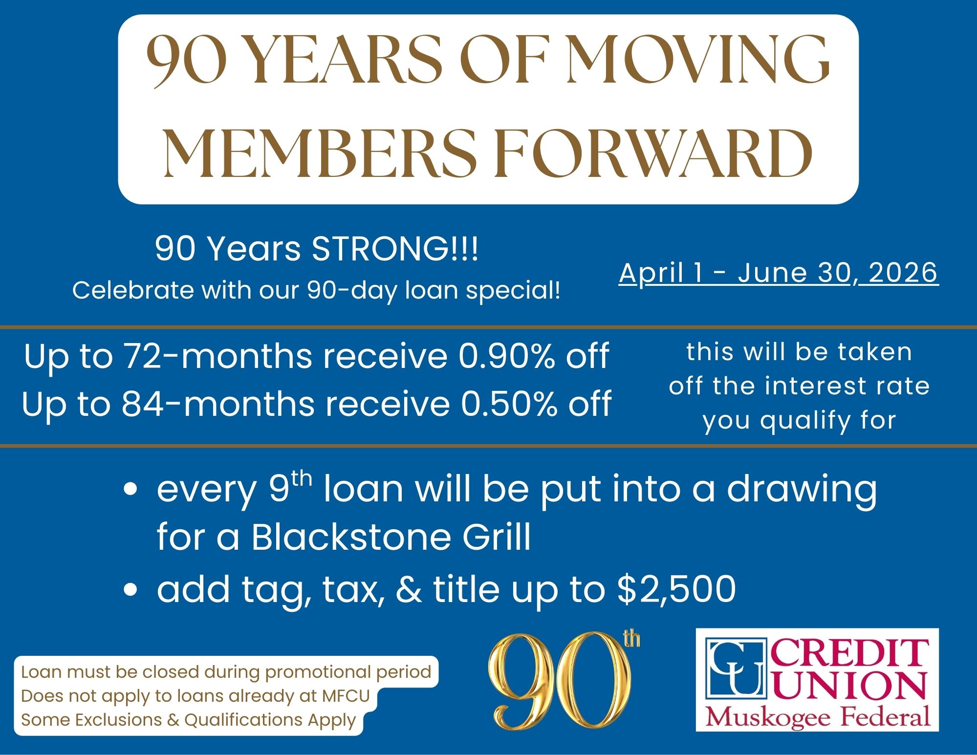 MFCU has an option that’s right for you. We offer a range of services, accounts, loans, and investment opportunities. On January 28, 1936 an organizational meeting was held to establish a Credit Union for the employees of the Veterans Administration Facility and their families. Those present applied for a charter in the name of U.S. Veterans Facility Muskogee Federal Credit Union #946. The Credit Union began with 34 members. Over the next several years the field of membership increased to encompass several select employee groups and additional services were added. Muskogee General Hospital Credit Union merged with The Muskogee Government Employees Federal Credit Union in 1984. As a result, the name was changed to Muskogee Federal Credit Union in January 1985. On July 31, 1998 approval was received to amend the Credit Union charter to a community charter enabling us to serve persons who live, work, worship, or attend school in Muskogee and Cherokee counties. Today the Credit Union serves more than 9,000 members and assets exceed $70,000,000.
